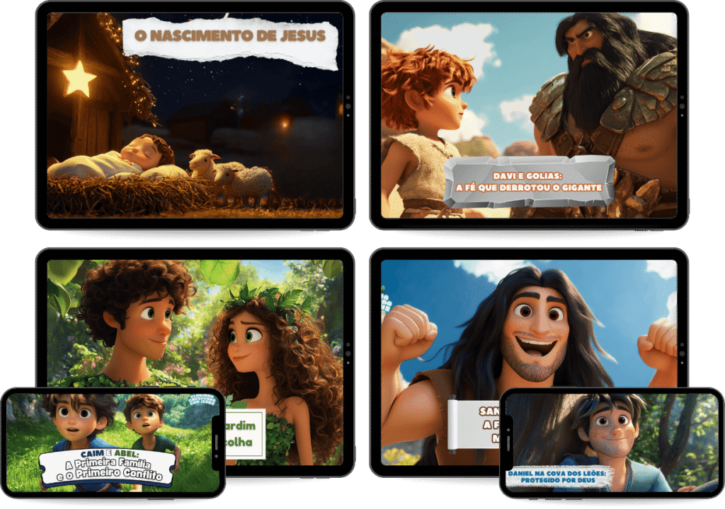 Imagine seus filhos aprendendo os ensinamentos da Bíblia de forma leve, divertida e envolvente… É exatamente isso que você encontra no nosso acervo exclusivo de historinhas bíblicas em vídeo.
